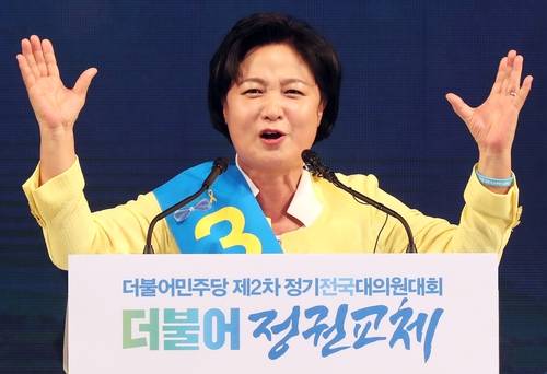 27일 오후 서울 송파구 올림픽체조경기장에서 열린 더불어민주당 제2차 정기전국대의원대회에서 신임 대표로 선출된 추미애 당 대표는 대표직 첫날인 28일 오전에는 휴식을 취하면서 정국구상에 매진할 것으로 보인다.