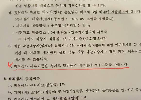 하지만 누리장터를 통해 입찰을 진행한 출판도시입주기업협의회의 입장은 전혀 달랐다.