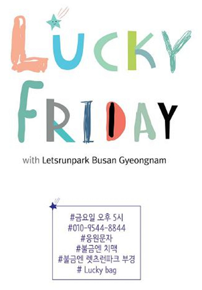 렛츠런파크 부산경남(본부장 고중환)이 'Lucky Friday' 행사를 시행한다. 동 행사는 연장된 야간경마기간인 9월 2일부터 10월 28일까지 매주 금요일마다 총 8회 시행 예정이다.