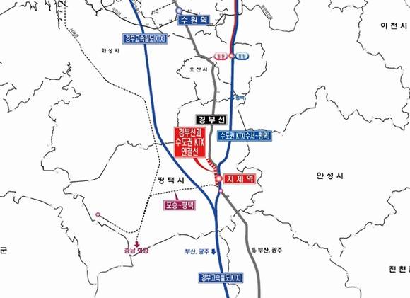 수원발 KTX 직결사업은 경부선 서정리역과 수도권KTX(수서~평택) 지제역 간 4.4km 구간을 연결하는 사업으로 남경필 경기도지사의 공약으로 역점 추진한 정책이기도 하다.