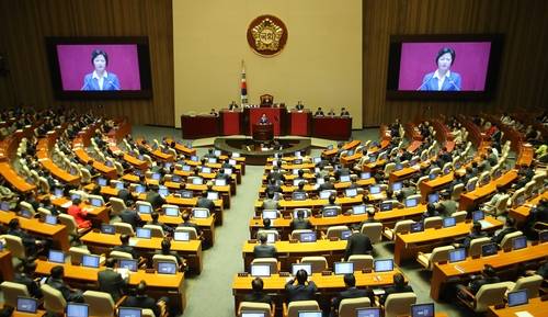 ▲더불어민주당 추미애 대표는 6일 오전 국회본회의서 열린 교섭단체대표연설에서 박근혜 대통령에게 “한 발짝만 국민 곁으로 다가서 달라. 그 자리에서 경제를 봐주시길 부탁드린다. 대기업의 시각이 아니라, 서민과 국민의 시각에서 지금의 민생경제위기를 살펴봐주시기 바란다”며“민생경제 전반에 대한 ‘비상 민생경제 영수회담' 즉각 개최를 제안한다”고 밝혔다.(사진=연합뉴스)