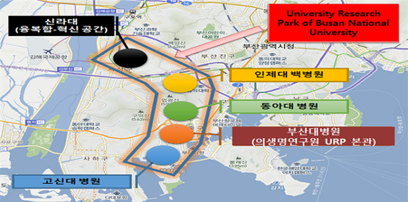 대학 산학연 연구단지 조성사업은 대학 내의 유휴공간에 기업을 입주시켜 대학·산업체·부산시가 협업을 통해 대학주변을 부산의 6대 미래산업 창출의 거점으로 육성하기 위한 사업으로 주관대학으로 선정이 되면 4년간 50억원(자부담 50억원 별도)의 사업비가 지원이 되며 4년 후에는 자립화를 유도하는 사업이다.