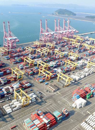 ▲부산항 신항 한진해운부두에 배가 접안하는 선선이 비어 있다. (사진=연합뉴스)