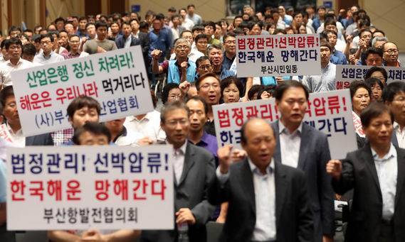 법정관리는 해운업 특성상 파산선고나 마찬가지다.