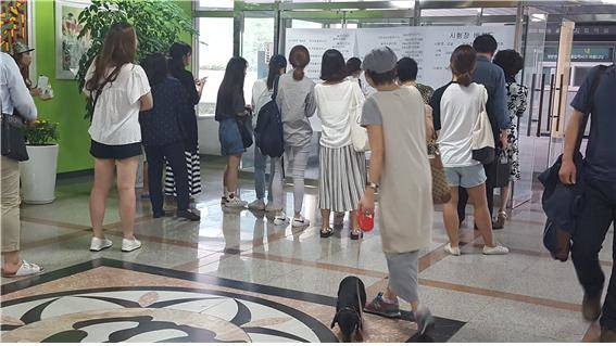 ▲반려동물관리사 자격시험장에 수험생들이 관련 정보를 살펴보고 있다(사진= 반려동물관리협회)