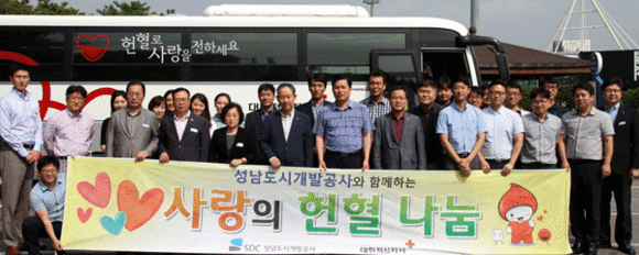 11일 성남도시개발공사에 따르면 "백혈병, 수술자의 수혈용 혈액 공급부족과 최근 인구 노령화에 따른 중증환자 증가 등 혈액수급의 안정화를 위해 지난 8일 사랑의 현혈나눔 행사를 벌였다"는 것이다.
