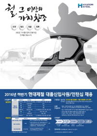 현대제철은 오는 20일까지 하반기 대졸신입사원/인턴십 공개채용을 진행 중이다.