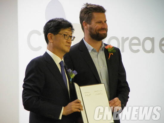 ▲박근태 CJ대한통운 사장(왼쪽)과 맥시밀리언 비트너 라자다그룹 회장. (사진=이성호 기자)