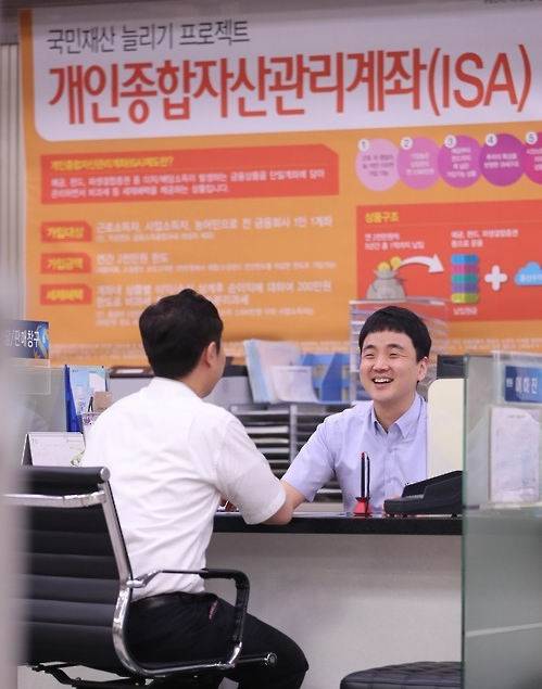 ▲서울 중구 신한은행 본점에서 한 고객이 개인종합자산관리계좌(ISA)와 관련, 창구직원과 상담하고 있다. (사진=연합뉴스)