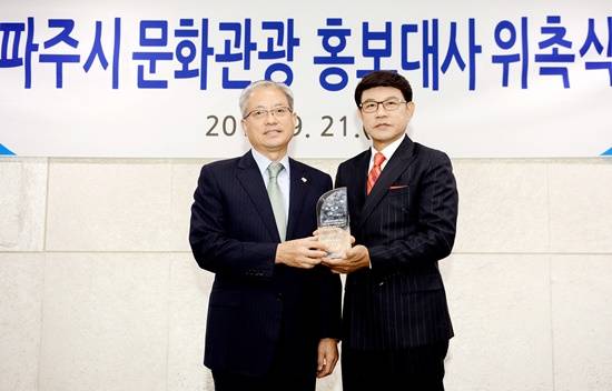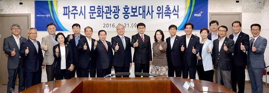 손희정 의원도 "파주시의 홍보대사로 가장 적합한 분이 오셨다"며 "앞으로의 먹거리는 문화 관광산업이므로 많은 관심을 갖고 파주시 발전을 위해 노력해 달라"고 당부했다.