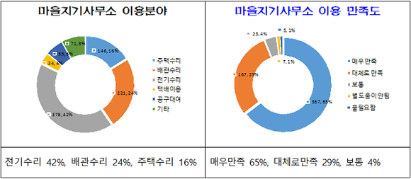 현재 운영중인 마을지기사무소 13개소 이용주민 665명에 대하여 설문조사를 5월~7월까지 3개월간 실시한 결과 주민만족도 94%, 생활에 도움이 되는지에 대하여 96% 필요하다고 답했다.
