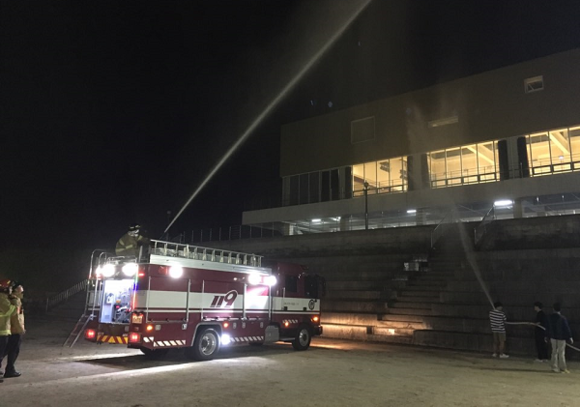 이날 훈련은 최근 지진 발생으로 인한 대피훈련과 시설점검을 통해 만일의 발생상황을 가상하여 화재발생 119신고, 화재초기 자위소방대 활동, 지진 피난대피 훈련, 소화기 및 소방호스로 화재진압, 환자 이송 등의 실전모의 형태로 진행됐다.