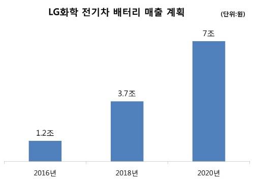 LG화학은 2020년에 전기차 배터리분야에서 7조원의 매출을 달성할 것이라고 밝혔다.