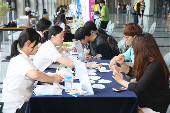경성대(총장 송수건) 교육연구처 학생상담센터는 행복한 대학생활을 위한 심리지원 캠페인 '맘앤몸 플리마켓'을 27일 건학기념관 1층에서 진행했다.