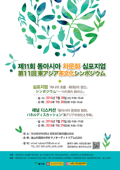 부산외대 만오 오디토리움에서 개최되는 이번 행사는 한‧중‧일 동아시아 3국이 공유하고 있는 차(茶)문화를 통해 3국 관계를 되돌아보고 상생방안을 토론하기 위해 마련된다.