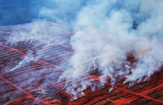 ▲한국계 기업 코린도의 인도네시아 팜유 농장 개발 모습. 환경단체들은 코린도가 농장 확장을 위해 열대우림을 고의적으로 불태웠다고 주장하고 있다. (사진=마이티)