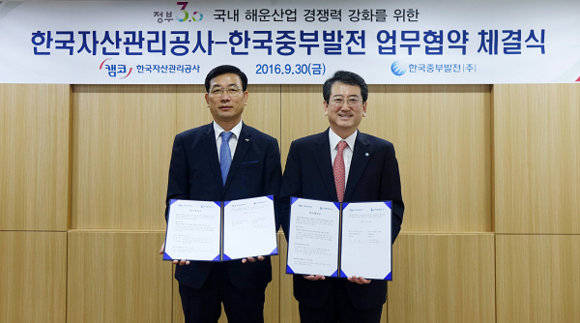 한국자산관리공사(캠코)와 한국중부발전은 30일 오전 11시 서울지역본부에서 정부의 해운산업 경쟁력 강화 정책의 효과적 지원 및 해운산업 발전을 위한 업무협약을 체결했다.