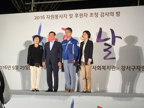 한국공항공사 부산지역본부(본부장 조현영)는 29일 강서구종합사회복지관이 주최한 '2016년 자원봉사자 및 후원자 감사의 밤'에서 다양한 사회공헌활동 및 지역사회 복지환경 발전에 기여한 공로를 인정받아 우수 공기업으로 강서구청장 표창을 수상했다.
