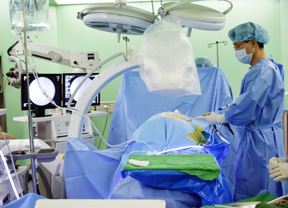 ▲내시경 레이저 시술을 집도하고 있는 모습.