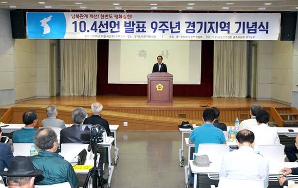 경기도의회 정기열 의장이 4일 경기도의회 대회의실에서 열린 10.4 선언 발표 9주년 경기지역 기념식에 참석했다.