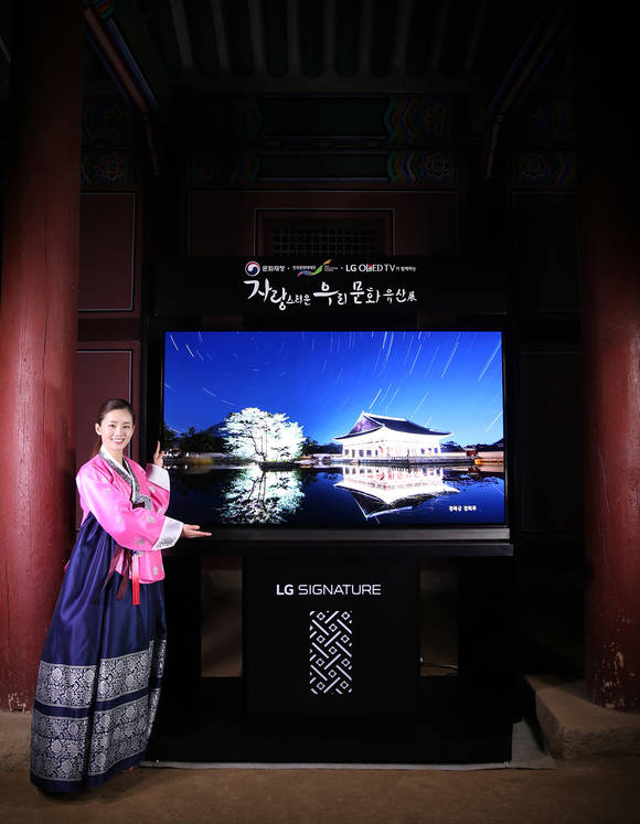 LG전자는 이번 전시에 LG SIGNATURE(LG 시그니처) 올레드 TV를 비롯한 올레드 TV를 경복궁에 15대, 덕수궁에 10대 설치한다. 명승, 유적지, 인간문화재 등 소중한 문화유산을 영상으로 제공할 예정이다.
