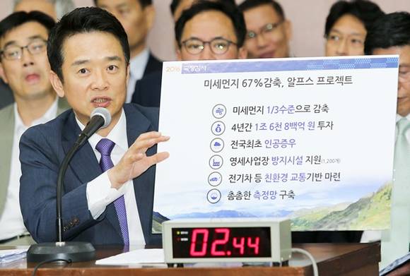 ▲남경필 경기도지사가 경기도의 미세먼지 감축 ‘알프스 프로젝트’에 대해 설명하고 있다.