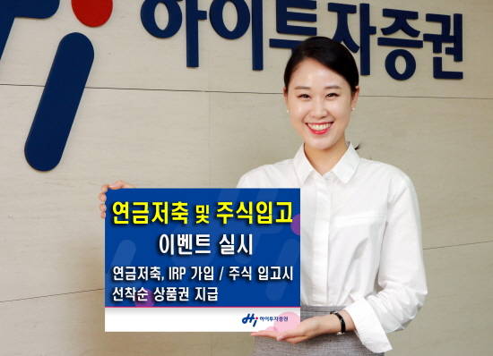 하이투자증권은 6일 연금저축 또는 적립 IRP 가입 고객을 대상으로 가입금액에 따라 상품권을 지급하는 ‘연금저축 이벤트’와 주식입고 신규고객을 대상으로 상품권을 지급하는 ‘주식이사 이벤트’를 진행한다고 밝혔다.