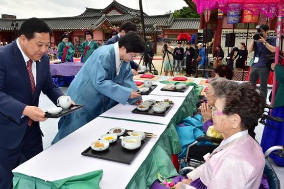 한편 진찬연에 앞서 정조대왕의 효심과 애민정신을 계승하기 위해 100세 어르신 양로연을 열었다. 지역의 100세 이상 어르신 3명을 초청해 꽃과 술을 바치는 헌화, 헌주 및 설찬의식, 장수지팡이 증정행사를 가졌으며 이 자리에는 염태영 수원시장이 직접 재연행사에 참여해 어르신들을 맞이하며 설찬의식을 재현했다.