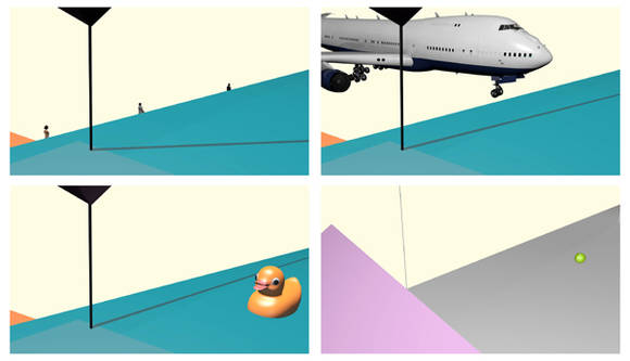 색면 회화처럼 보이는 단순한 화면은 처음엔 2차원적 평면성을 강조하는데, 영상이 전개되면서 점차 3차원적 공간으로 보인다. 2차원 평면과 3차원 공간이 오가는 상황들이 화면에 반복된다. 그래서 영상 속 세상은 평면으로도, 공간으로도 틀을 지어놓을 수 없다.