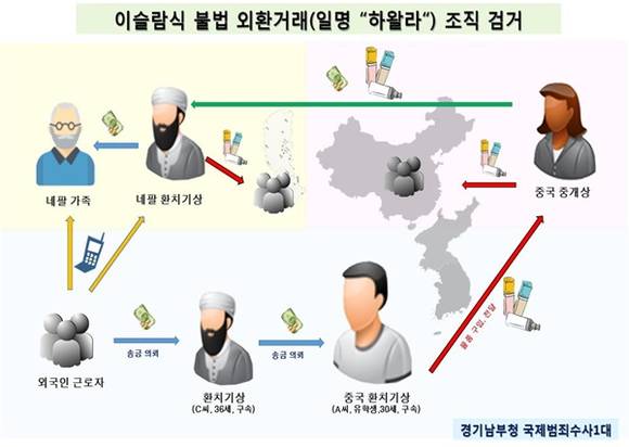 경찰 조사결과 이들은 국내 체류중인 중국인 유학생 A씨, 네팔인 이주근로자 B씨, C씨 등은 국산 유명화장품을 중국으로 밀수출하는 방법 등을 통해 네팔․방글라데시 등 현지인들에게 은행을 통하지 않고 비공식 자금이체방식인 ‘하왈라 환치기’로 돈을 보낸것으로 드러났다.