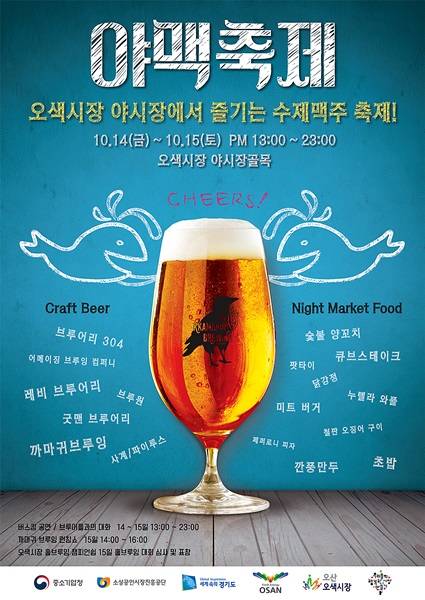전국 8개 브루어리 26종의 맥주와 야시장의 음식, 12팀의 뮤지션이 어울리는 야맥축제(오색시장 야시장에서 즐기는 수제맥주 축제)가 오는 14일부터 15일까지 오산 오색시장에서 열린다.