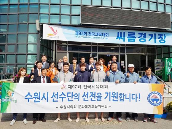 수원시의회 문화복지교육위원회는 11일 충남 태안과 당진을 찾아 제97회 전국체육대회에 출전한 수원시 선수단을 격려하며 선전을 당부했다.