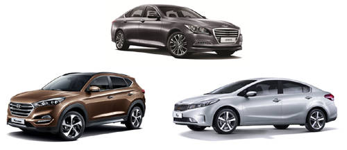 ▲2016 고객기술경험지수에서 최고 점수를 받은 현대·기아차 모델. (위에부터 시계방향) 제네시스 HD, K3(포르테), 투싼. (사진=현대·기아차)