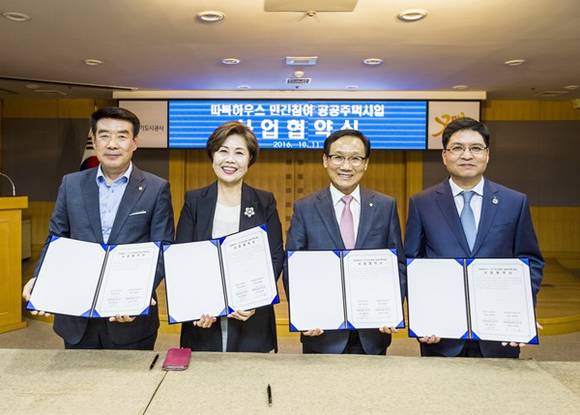 경기도시공사는 코오롱글로벌 컨소시엄과 11일 따복하우스 1차 민간참여 공공주택사업에 대한 협약을 체결했다.