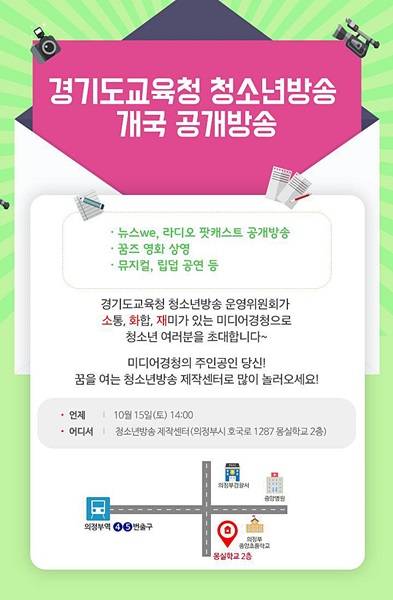 경기도교육청은 전국 최초로 청소년들이 직접 만들고 운영하는 온라인 방송인 경기도교육청 청소년방송 꿈을 터 Dream개국 공개방송을 오는 15일 개최한다.