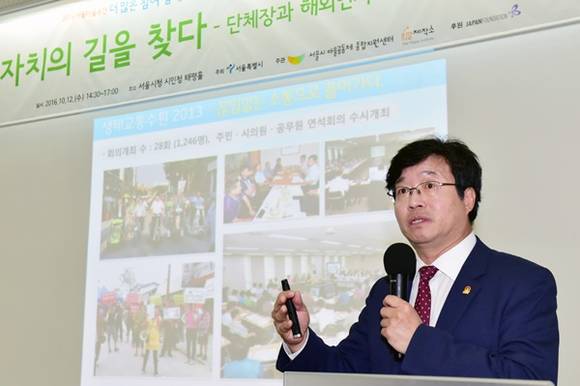 서울시가 주최하는 2016 서울마을주간 행사 기간 중 펼쳐진 이번 포럼에 참석한 염 시장은 “수원시는 정책에 시민의 소리를 반영하는 시민참여 프로그램을 기반으로 사람 중심의 시정운영을 추진했다”며 “시민참여의 실현은 정책제안, 정책평가, 예산편성, 계획수립, 정책집행 과정에 시민참여 장치 확보가 중요하다”고 강조했다.