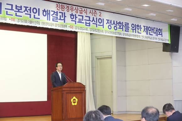 경기도의회 정기열 의장(더불어민주당)이 12일 경기도의회 대회의실에서 열린 급식비리의 근본적인 해결과 학교급식 정상화를 위한 제안대회에 참석해 “오늘 행사의 목적은 급식비리가 생기는 이유를 고민하고 학교영양교사와 영양사의 처우 문제를 공론화, 아이들의 건강까지 생각하는 친환경 학교급식이 이루어지도록 하는 방안을 마련하는 것” 이라고 말했다.