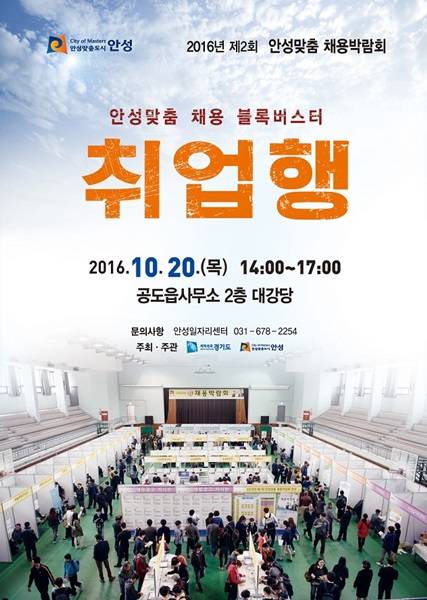 안성시는 오는 20일 오후 2시부터 2016년 제2회 안성맞춤 채용박람회를 공도읍사무소 2층 대강당에서 개최한다.
