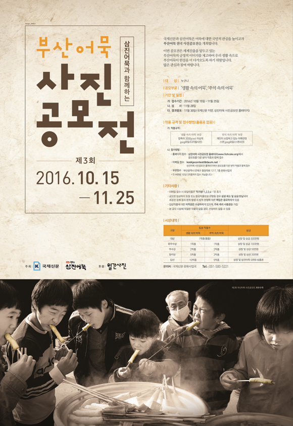 이번 부산어묵 사진공모전에서 대상에게는 상장 및 상금 300만 원이, 최우수상 2인에게는 상장 및 상금 100만 원이 수여된다. 또 우수상, 장려상, 입선 등 총 30명에게 1000만 원 상당의 상금 및 삼진어묵 상품권이 지급된다.