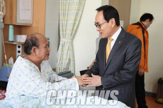 ▲김덕남 상이군경회장이 보훈병원을 방문해 옛 전우를 위로하고 있다. (도기천 기자)