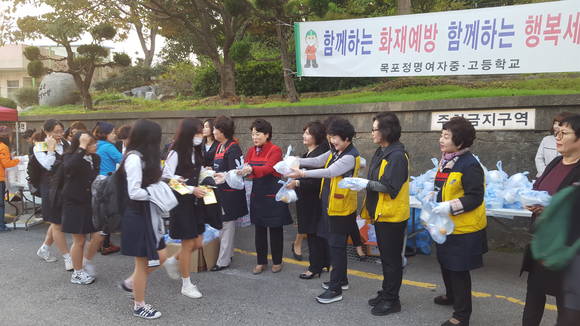 목포시여성단체協 정명여중‧고에서 직접 만든 주먹밥 나눠줘