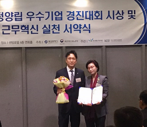 부산시와 부산지방고용노동청이 주최한 이번 시상식은 근로자의 일·가정 양립을 지원하고 기업의 생산력을 향상한 우수사례를 발굴하기 위해 지난 8월부터 참가 기업을 모집해 상위 9개 기업을 최종 선정했다. 선진 고용문화 개선과 저출산 문제 해결에 기업들이 앞장서겠다는 실천 서약식도 함께 이루어졌다.