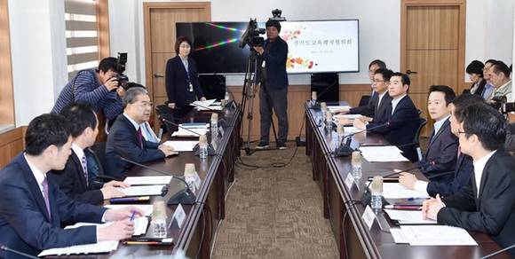 이재정 경기도교육감과 남경필 경기도지사는 20일 경기도교육청 회의실에서 교육행정협의회를 열고 다양한 교육현안에 대해 협의하는 시간을 가졌다.