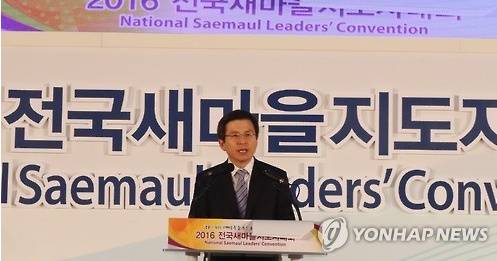 ▲2016 전국 새마을지도자대회에 참석해 축사하는 황교안 국무총리. (사진=연합뉴스)