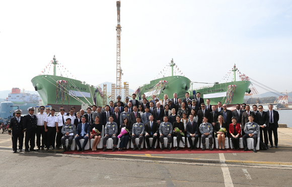 ▲20일 거제 대우조선해양 옥포조선소에서 8만4천㎥의 초대형 액화석유가스 운반선(VLGC) 4척에 대한 동시 명명식을 가졌다. (사진=대우조선해양)