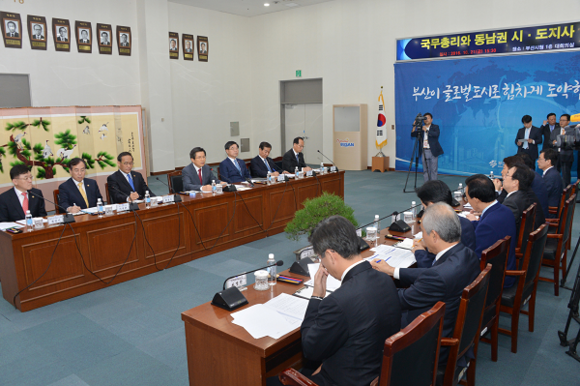 황교안 국무총리가 21일 오후 부산시청에서 동남권역 5개 시·도지사들과 간담회를 가졌다.