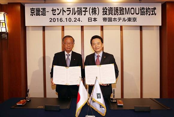 남경필 경기도지사는 24일 오전 일본 도쿄 소재 제국호텔에서 센트럴글래스 주식회사와 2500만 달러(FDI) 규모의 투자유치 MOU를 체결했다.