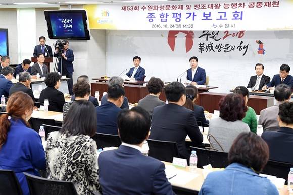 지난 7~9일 열린 제53회 수원화성문화제와 정조대왕 능행차 공동재현(8~9일) 행사에 관한 종합평가보고회가 24일 수원시청에서 열렸다.