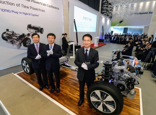현대·기아차는 이번 국제 파워트레인 행사에서 향후 아이오닉 플러그인 하이브리드와 니로 플러그인 하이브리드에 적용될 예정인 ▲플러그인 하이브리드용 파워트레인 시스템을 새롭게 선보인다.