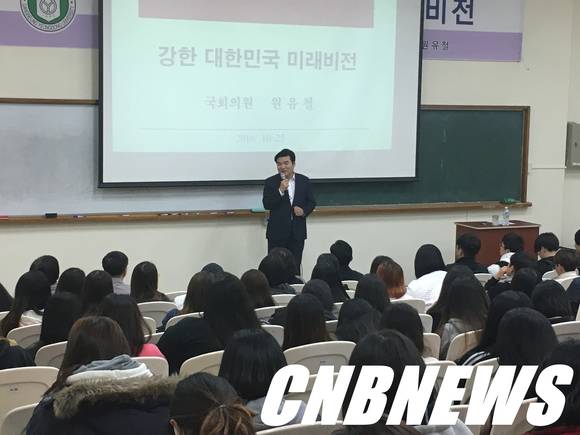 이날 특강에서 원유철 의원은 교직원 및 재학생 200여명이 참석한 가운데 대한민국의 경제 위기를 극복하기 위해 동북아의 새로운 경제 시장을 개척하는 '그랜드 코리아 실크로드' 정책을 설명했다.